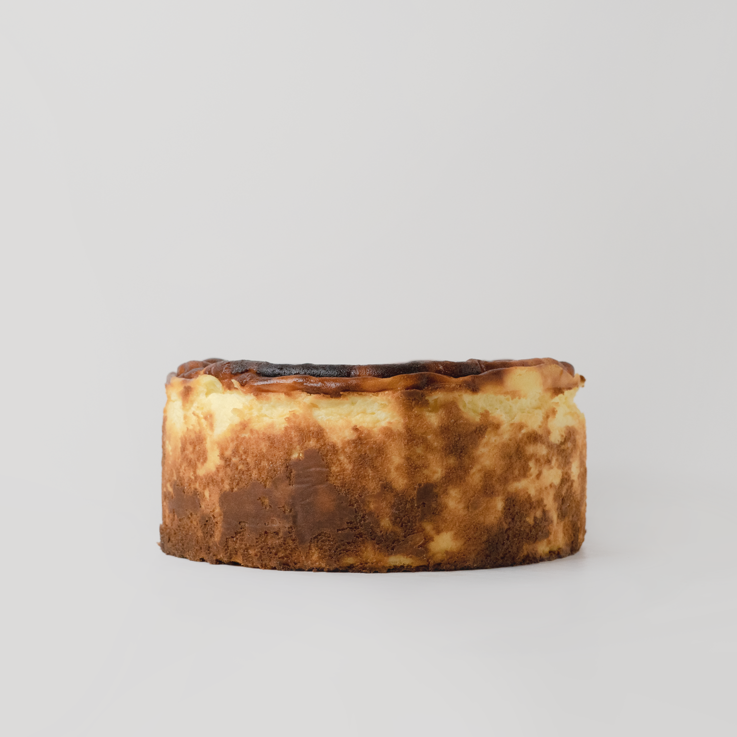 Black sesame chiffon cake, soy milk pudding, soy milk cream, black sesame cream, black sesame tuileBurnt Basque Cheesecake