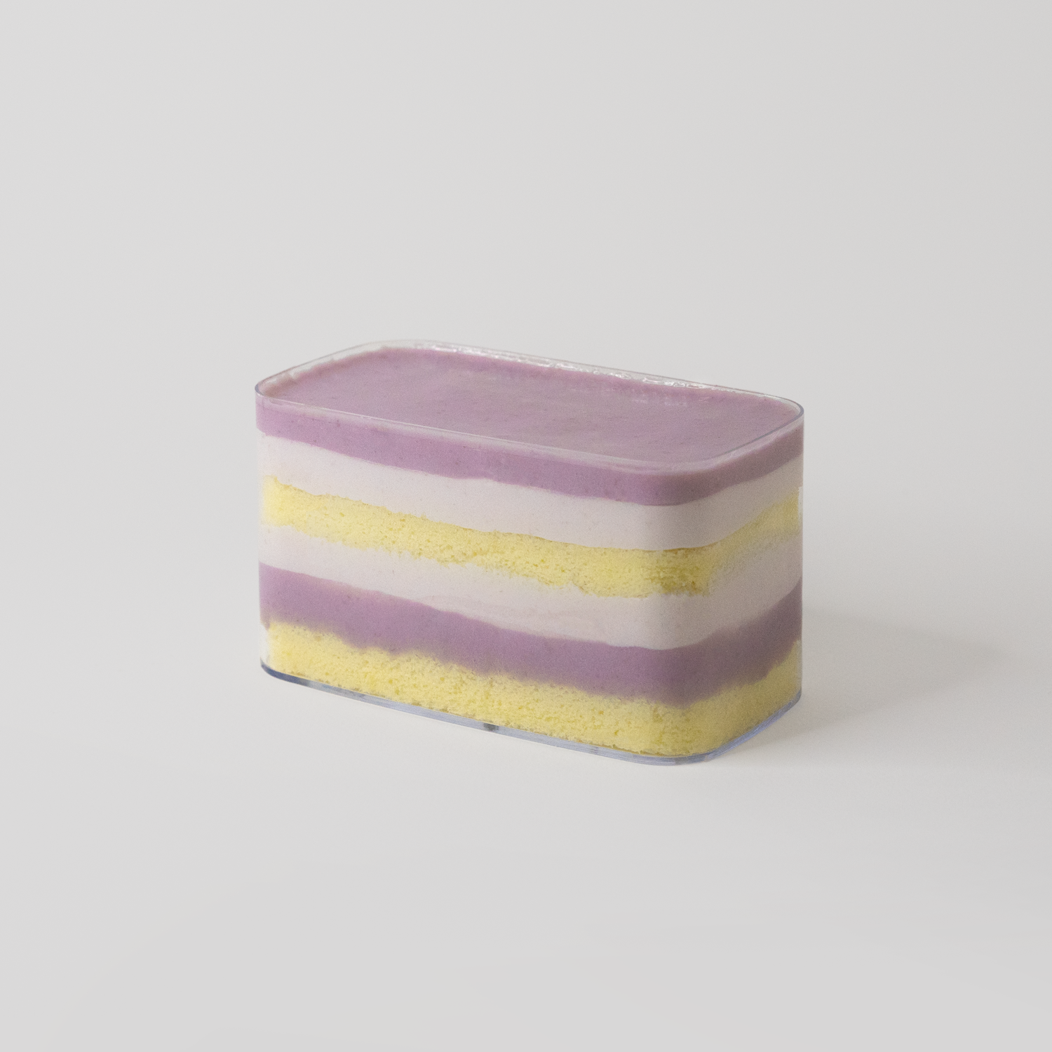 Taro has a very unique taste with a light sweetness and a beautiful light purple color. As one of our favorite ingredients, we created this taro cake to highlight the flavor of taro.Taro puree, taro cream, vanilla chiffon cake